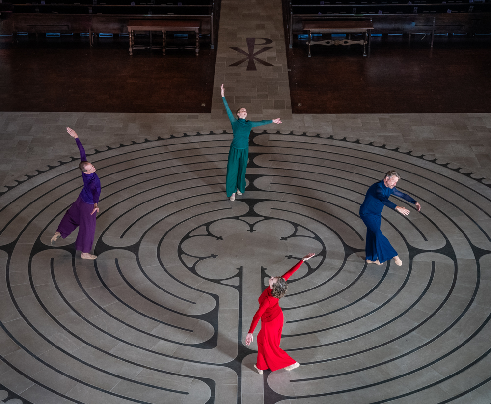 The dancers all perform Lawton’s choreography well – the clear timing of the phrases, the range from small gestures to extended arms, to swivels and hops and partner lifts. One year later, you feel the settling into the choreography. Everyone’s feet feel a little more on the labyrinth, and spines and heads lift upward to the vaulted ceilings.