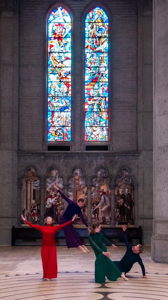Choreographically, I appreciated the vignette format and the range in tone and form – from ensemble sections to solos and duets, to solemn contemplation in this sacred space, and then even a few moments of play and humor. A vital shift for our times. Dana excels at the clarity of line, direction, and rhythm. Specificity and timing are always prioritized. She beautifully brings the music into 3-dimensions and invites a modern connection to a piece of music nearly 90 years old.